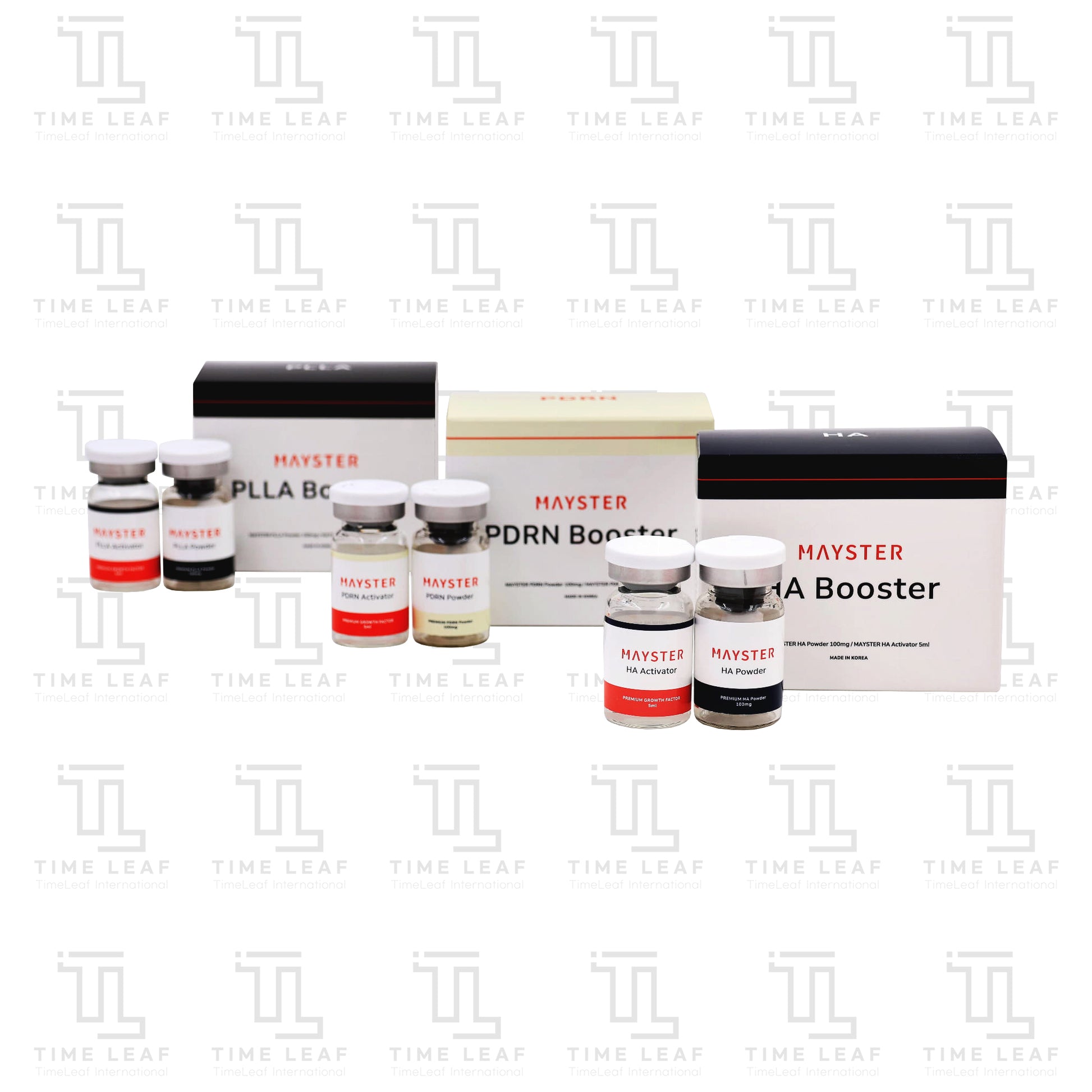 Mayster SET is made up of a PLLA Booster, PDRN Booster, and HA Booster. Each item specializes in a unique area of biorevitalization with benefits ranging from whitening to wrinkle reduction. PLLA Booster is a collagen stimulator. It also strengthens the internal structure of the skin, restores volume, and gradually increases elasticity back into the face. PDRN Booster is a whitening product.
